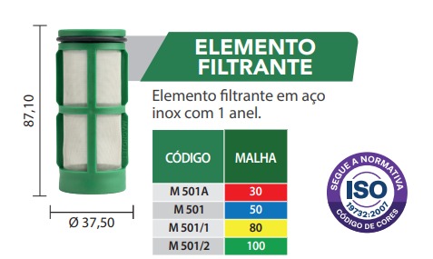 Fabricado com materiais resistentes e duráveis, o elemento filtrante possui excelente qualidade construtiva que assegura longa vida útil e confiabilidade operacional. Sua malha metálica de precisão garante retenção adequada de impurezas, contribuindo para reduzir entupimentos, desgastes prematuros e falhas no equipamento.