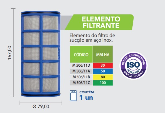 Elemento filtrante com malha 30, ideal para retenção de partículas sólidas de tamanho intermediário