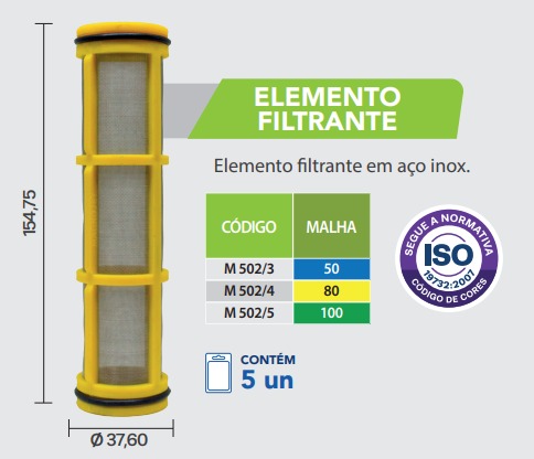 Compatível com filtros de sucção que utilizam elemento inox